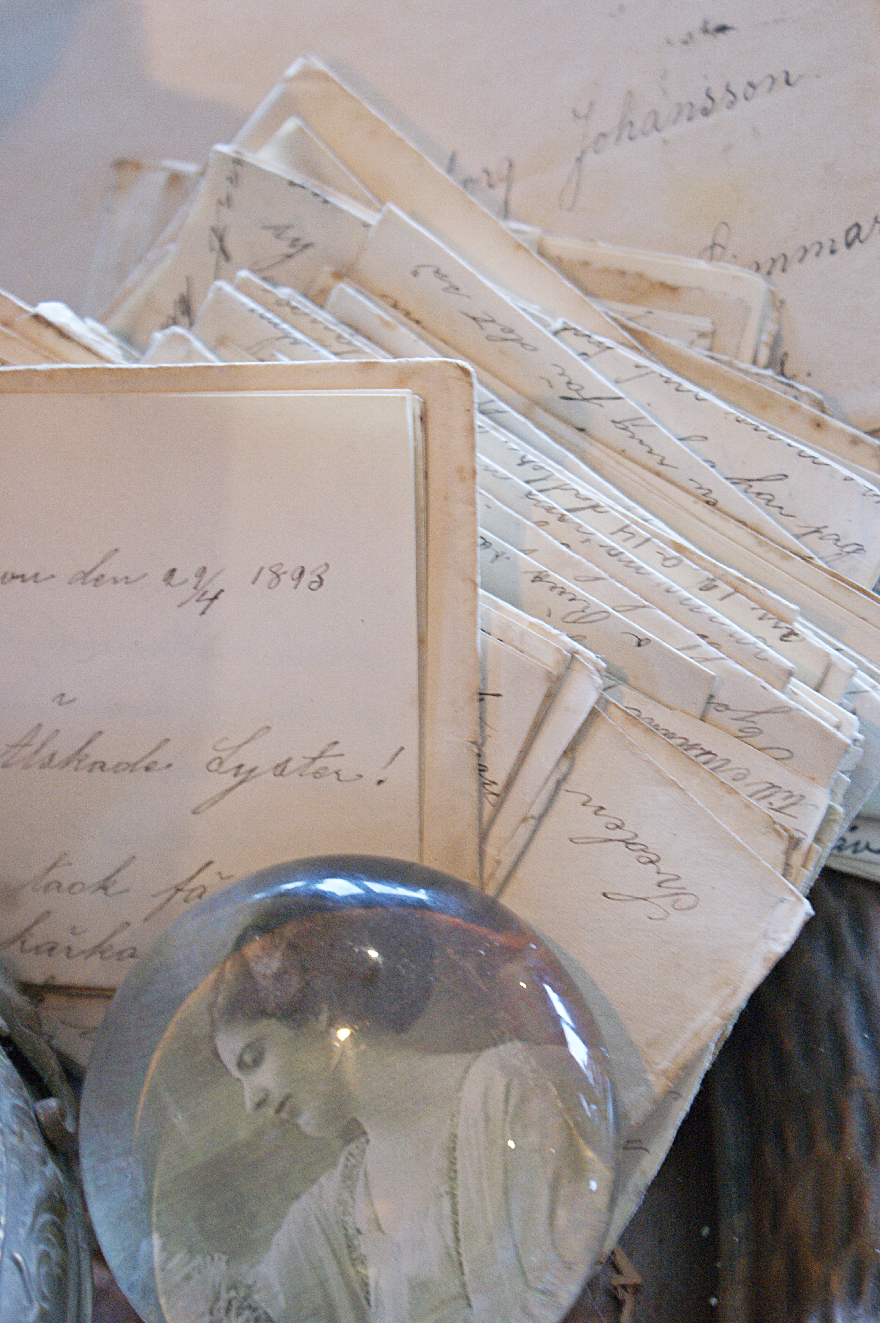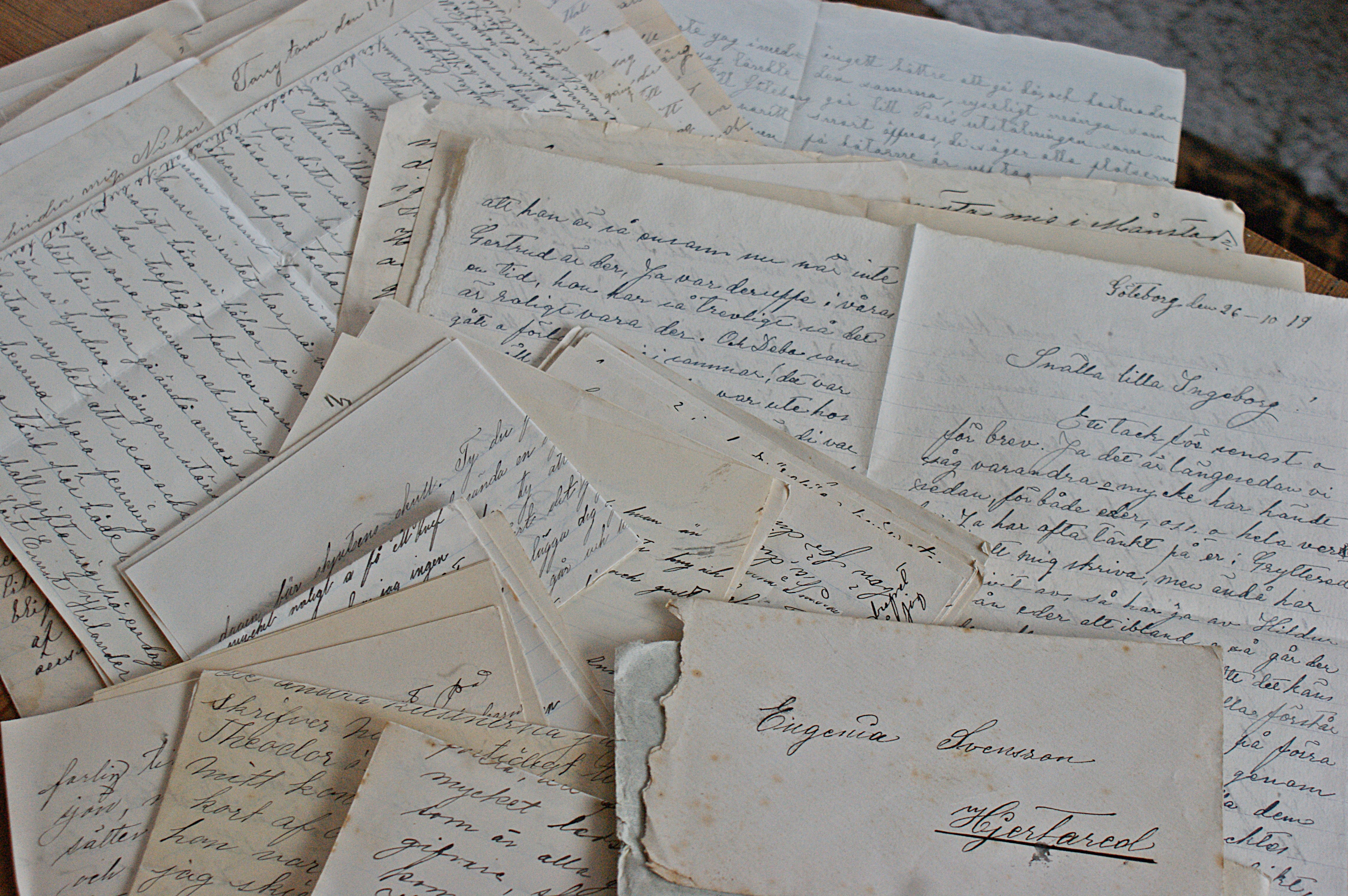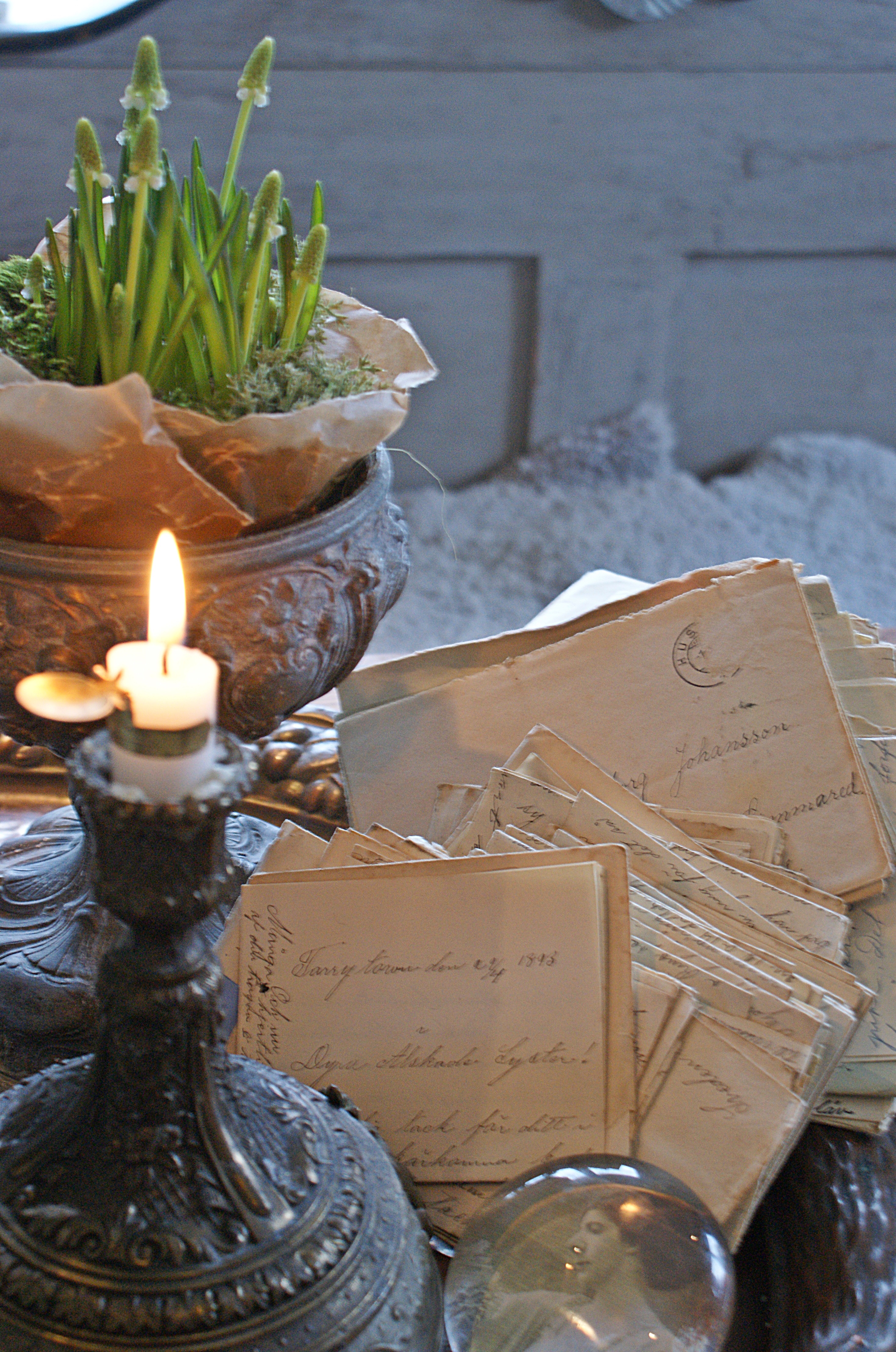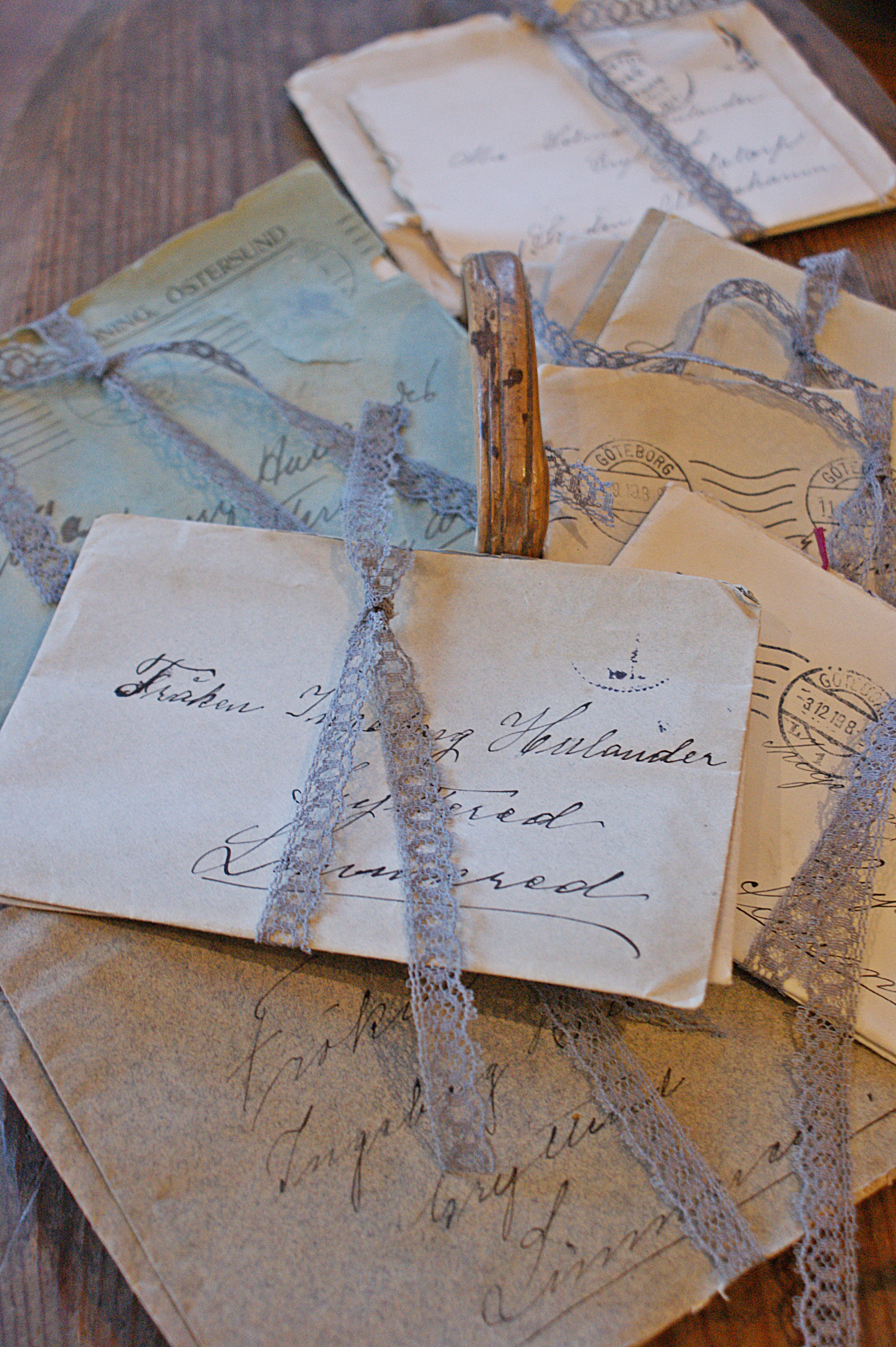 Man kan använda breven till mycket. Lägga dom lite snyggt. Rama in som bakgrund till fotografier. Kopiera dom och använda de till slå in paket. Användningsområdena är oändliga. Själva ska vi tapetsera med lite brev.