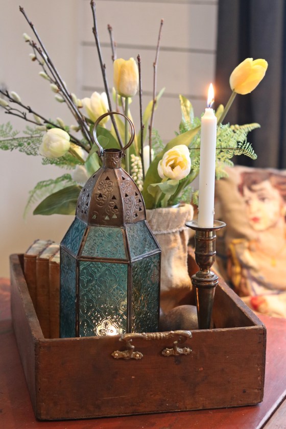 Här kommer lite inspirations bilder från vårt hem. Vill visa vad fint det är med lådor. Man kan hitta en låda och sätta på lite handtag och beslag. Man kan plocka ihop lite olika saker att fylla lådan med. Det kan bli ett vackert stilleben. Lådan håller ihop det hela så det inte ser så rörigt ut . Vi har lådor, skrin och askar ….typ överallt.