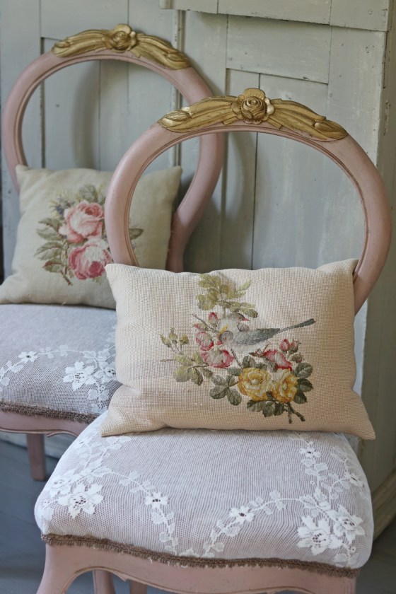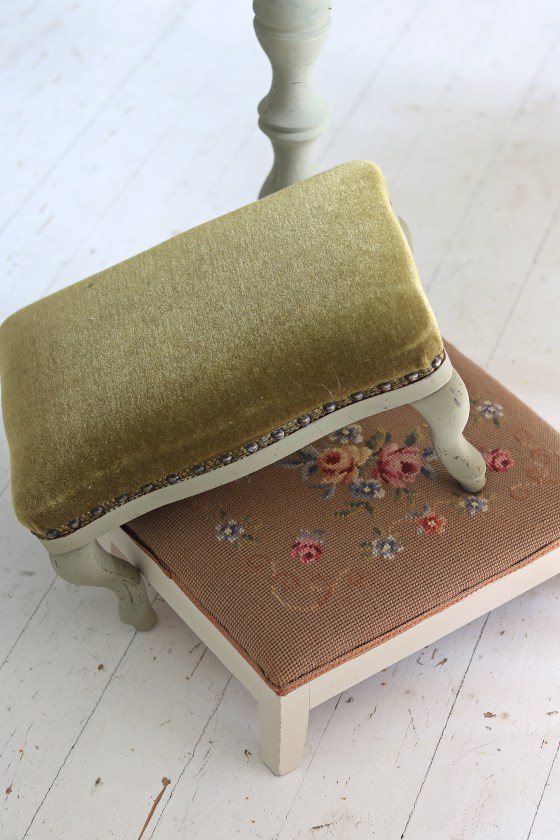 Linblomsgrönt litet bord och stol. Fantstiskt vacker färg.