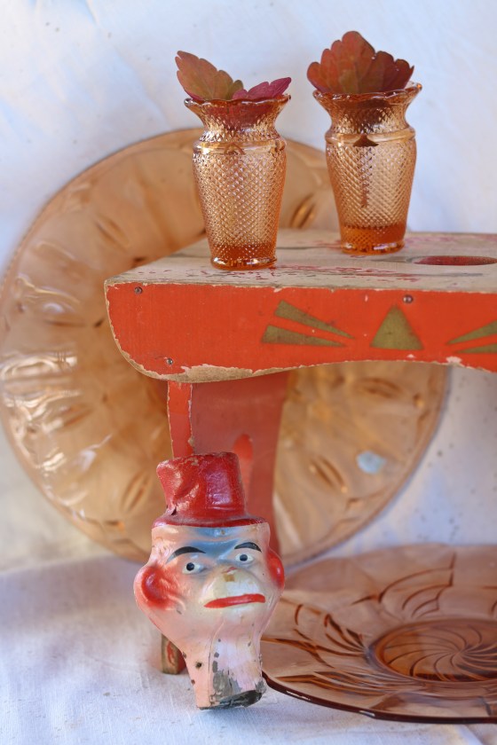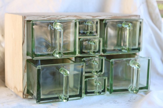 Kakburkar och färgat glas.