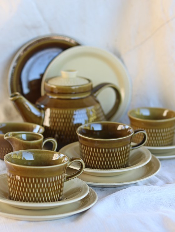 Höganäsi rostig ton. Mattallrikar samt assietter.
