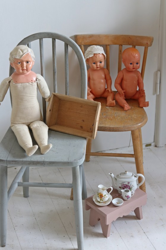 Barnstolar dockor samt en hel del för barnens lek.